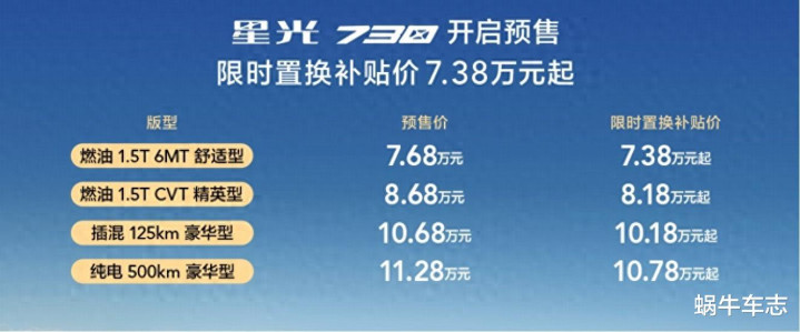 该说不说,上面这些MPV多少都有点让普通工薪阶层高攀不起。但“人民的五菱”专制各种“买不起又很想要”,这不五菱星光730马上就要上市了吗?现在预售价就很吸引人了:7.68万-11.28万元,若是有置换的话,还能再减5000元。我估计上市后的价格,也就在7万元左右起步,涵盖燃油、插混、纯电三种动力选择。