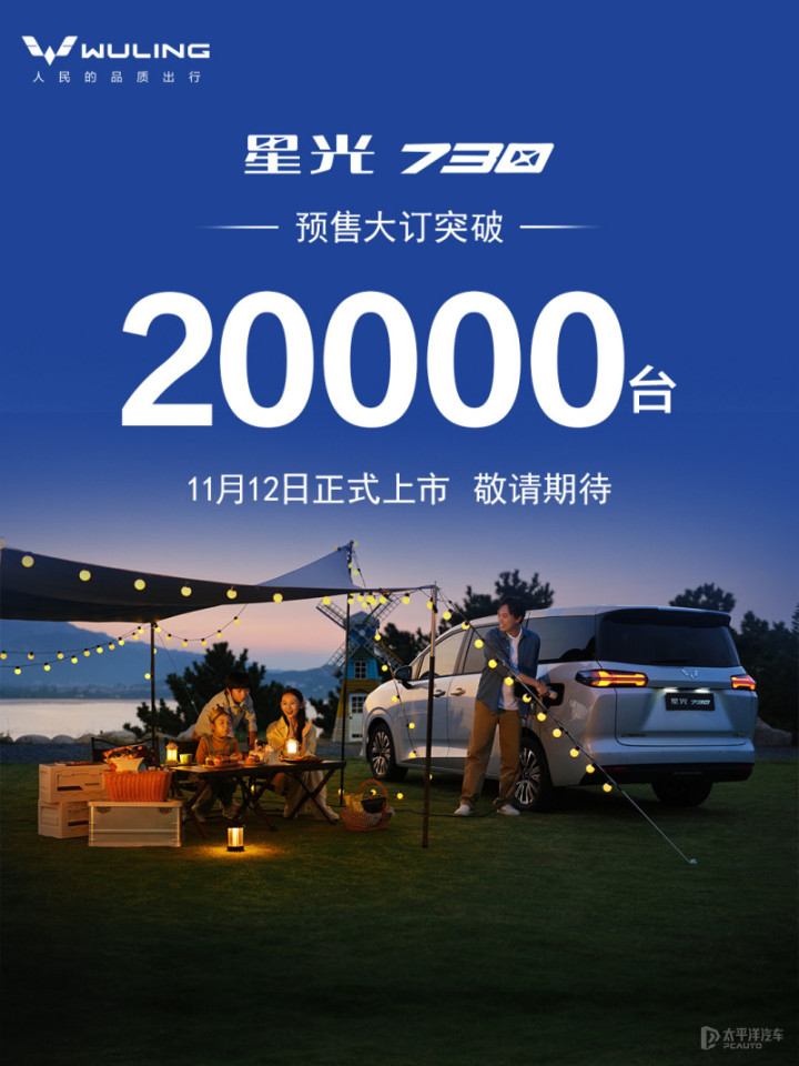日前,我们从五菱汽车官方获悉,五菱星光730预售大订突破2万台,新车将于11月12日正式上市。